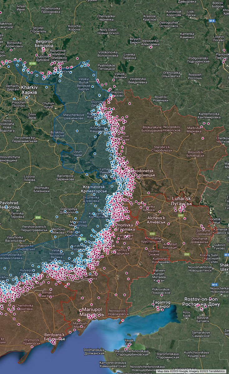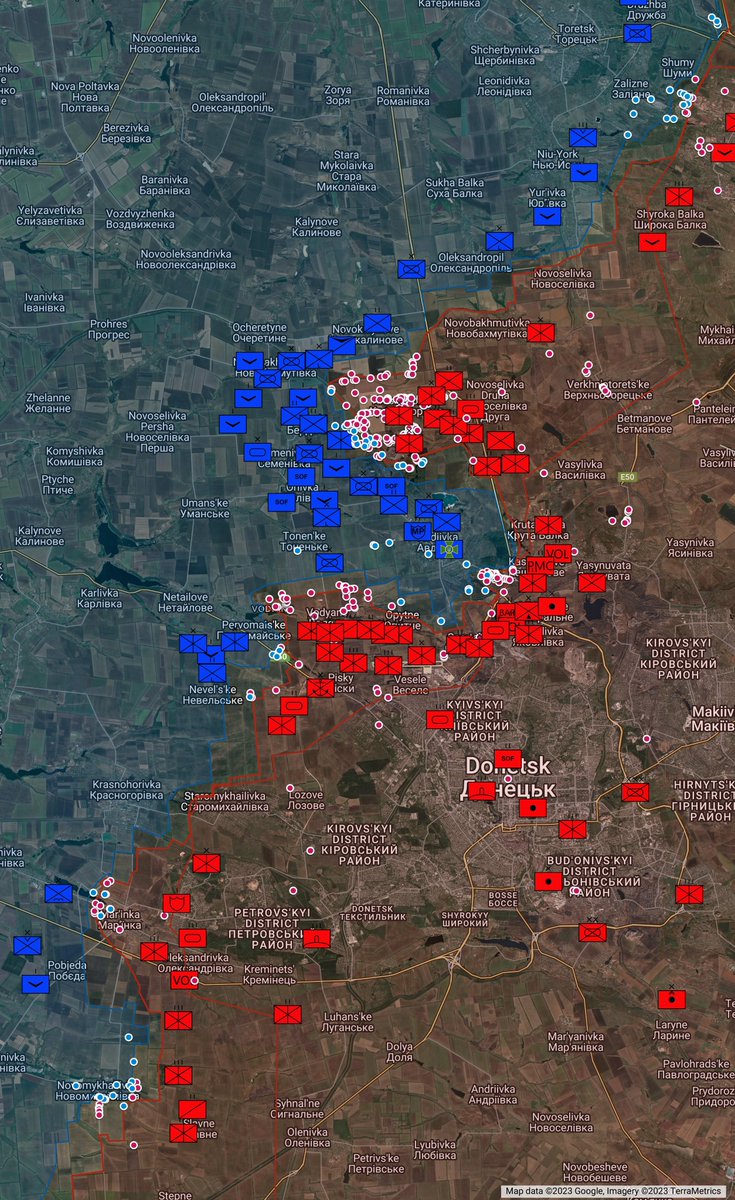 January through May 2023: The Russian forces, led by Wagner's convict waves, assault Bakhmut mostly with infantry and artillery. The city is ruined, and eventually falls in May. The high price that Russia paid for this had severe consequences for the Russian Armed Forces & PMCs