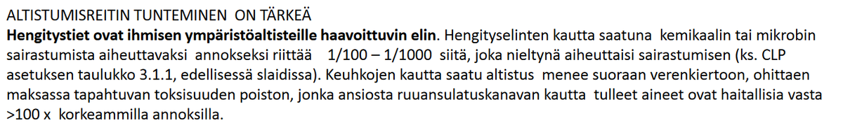 Laskelmassa ei huomioida myöskään sitä, että ilmassa oleville toksiineille altistutaan samanaikaisesti myös ihon kautta. Prof. Salkinoja-Salonen on pitänyt myös tätä asiaa esillä. 25/ kemiamedia.fi/wp-content/upl…