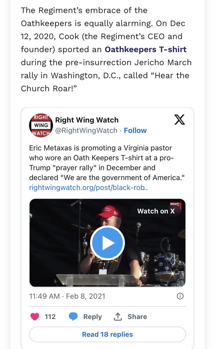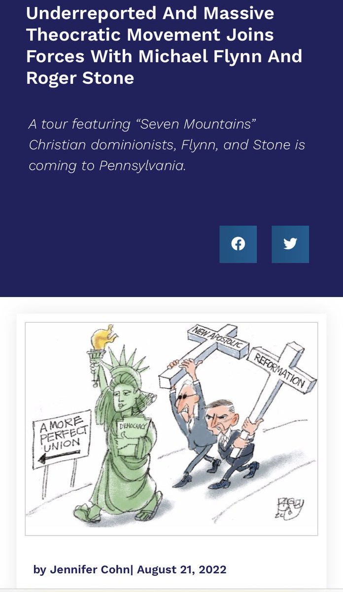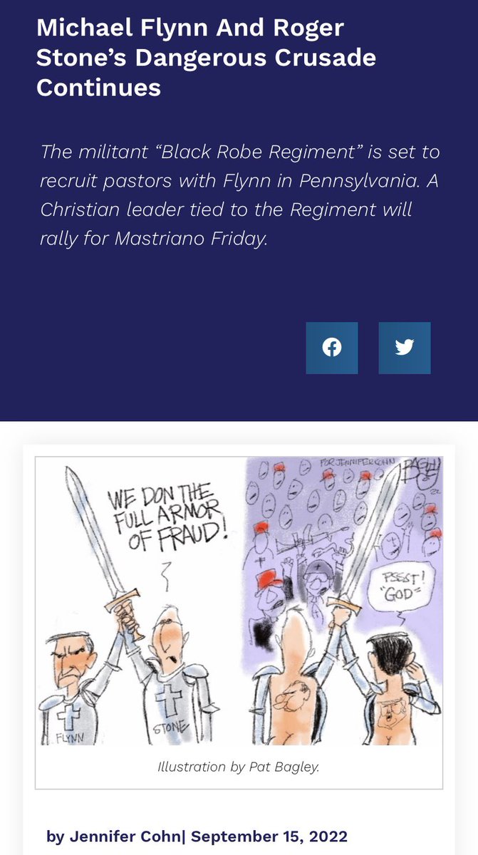 Here, I wrote about far right pastor Bill Cook, as well as the militant black robe regiment movement and its ties to Mike Flynn, Roger Stone, & the Oath Keepers. Again, it is MILITANT Christian Nationalism that we face in America. 2/ buckscountybeacon.com/2022/09/michae…
