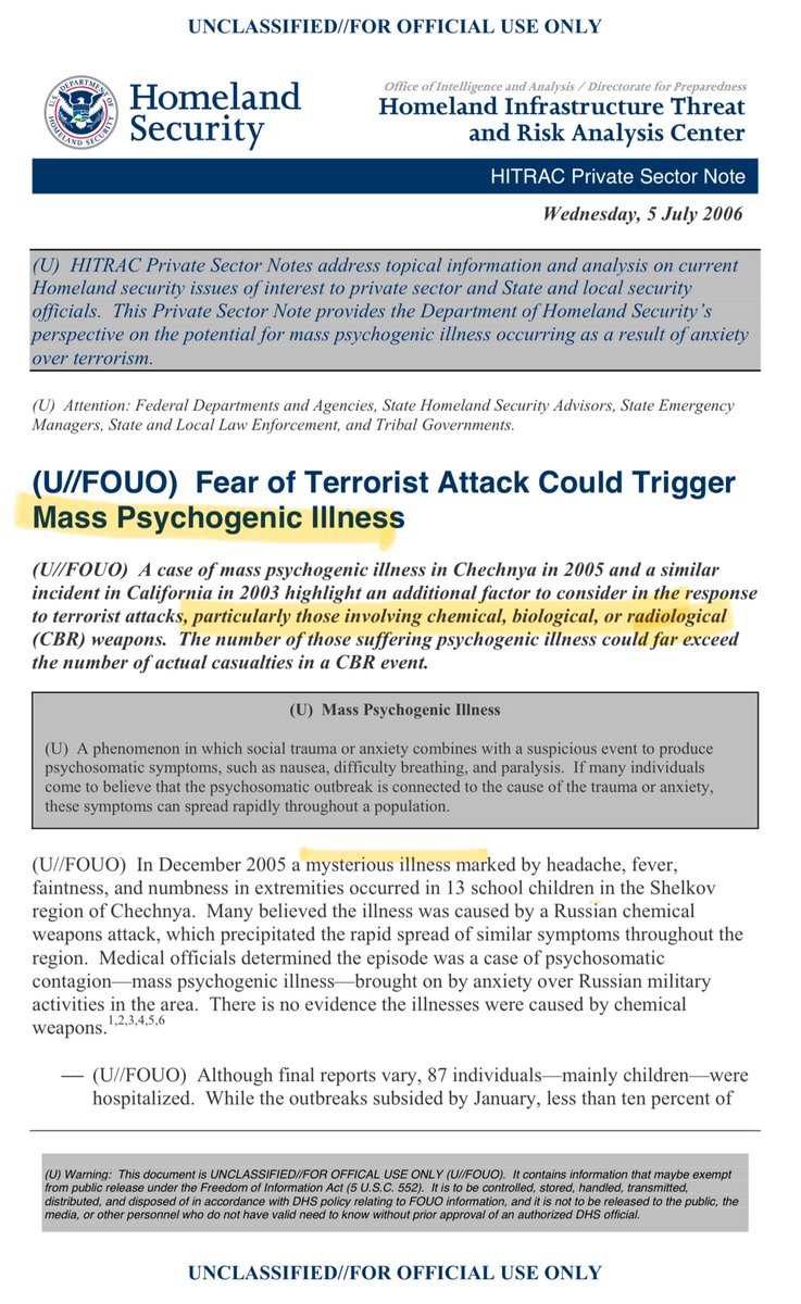 A 2006 DHS document about the possibility of a “Mass Psychogenic Illness” they define as: