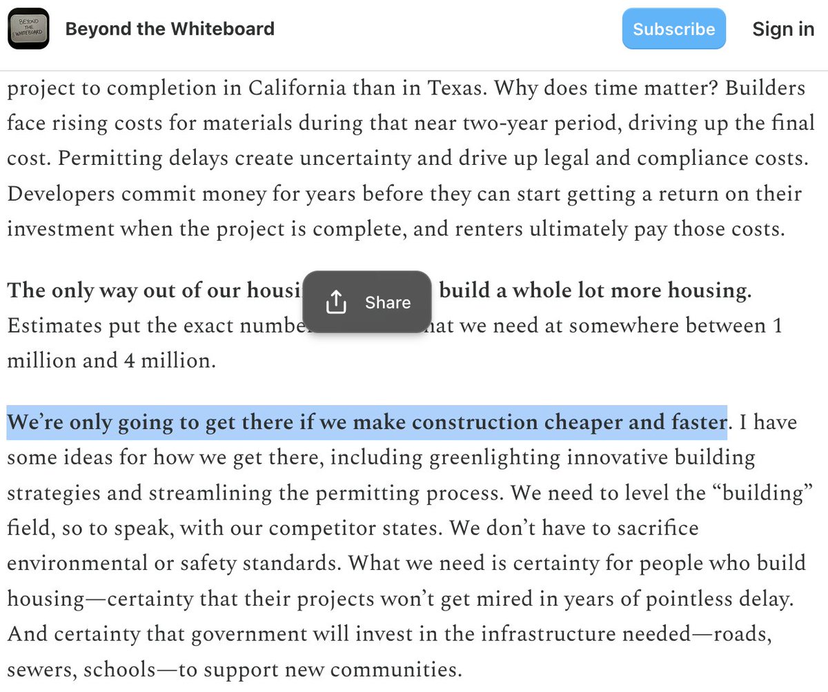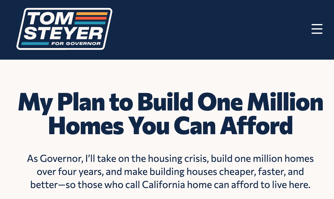 .@katieporterca and @ericswalwell have also been clear that CA needs to drive down the cost of building (though their published housing platforms have fewer specifics than @TomSteyer's & @MattMahanSJ's)