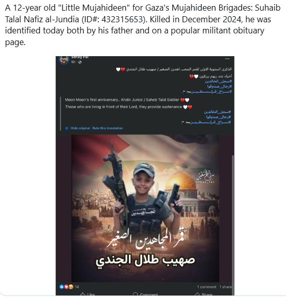 Last week a 12 year old was uncovered as a child combatant, among the youngest yet revealed. His father openly revealed that he was killed as a fighter. Silence from UN and Fake NGOs like Amnesty & HRW 2/
