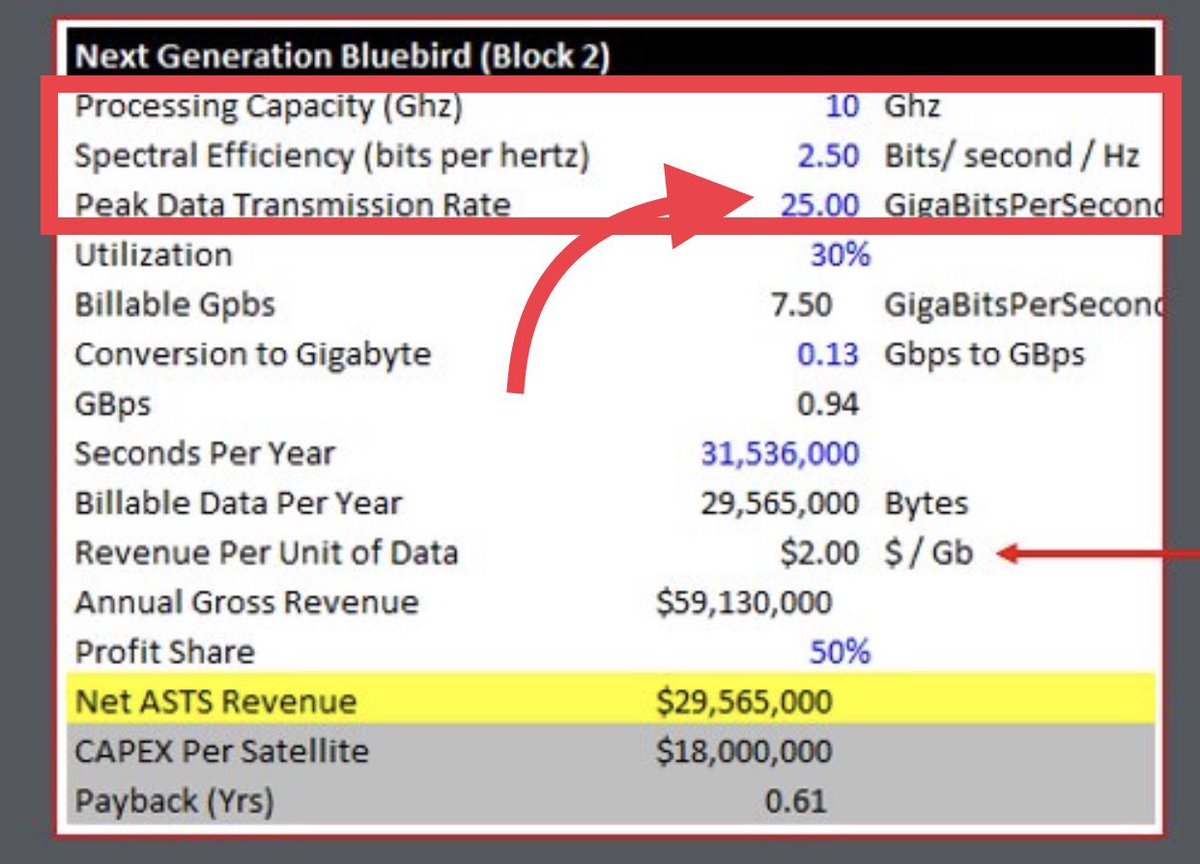 Throughput per beam is in ASTs case (as in Elons) bandwidth dependent.