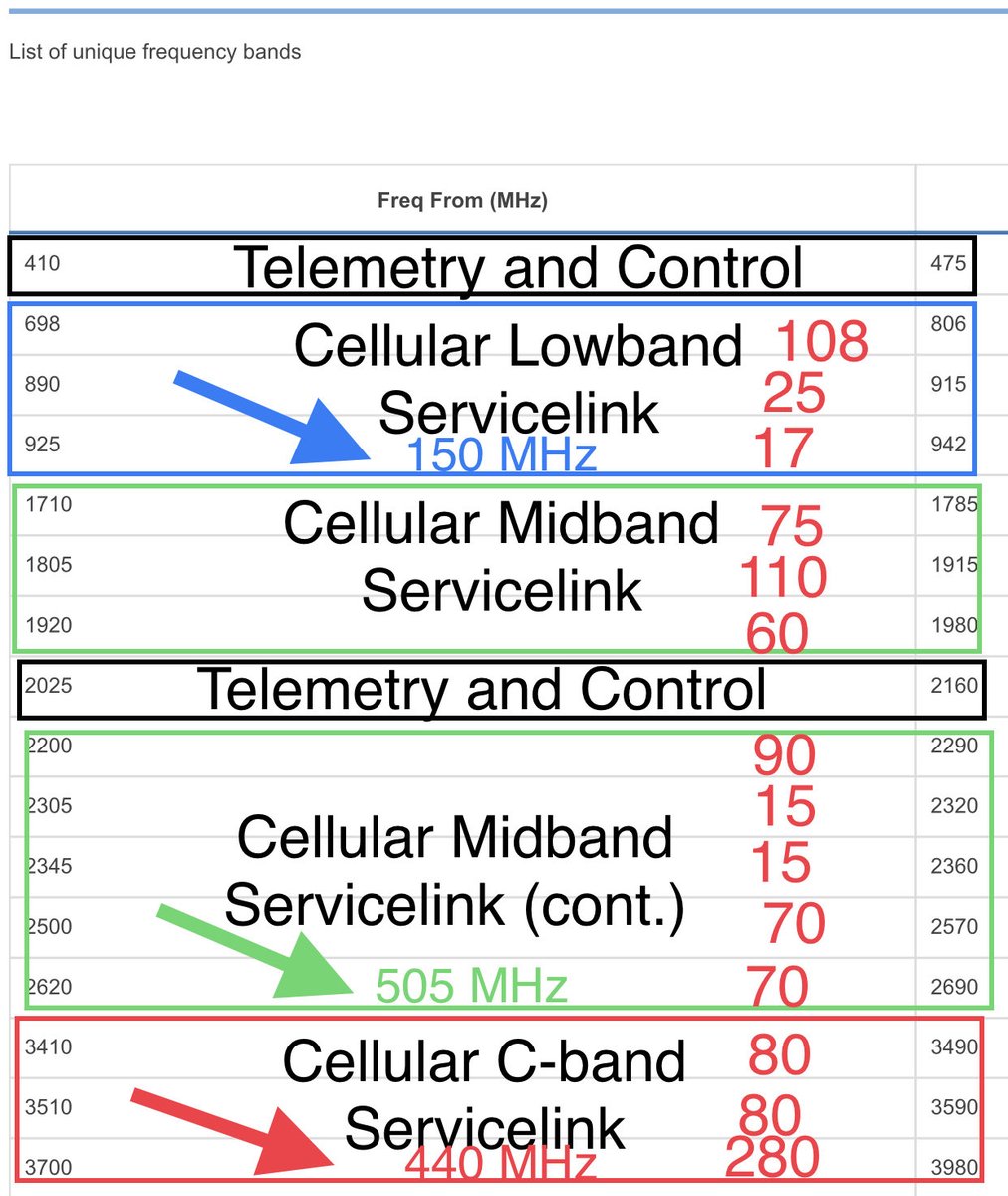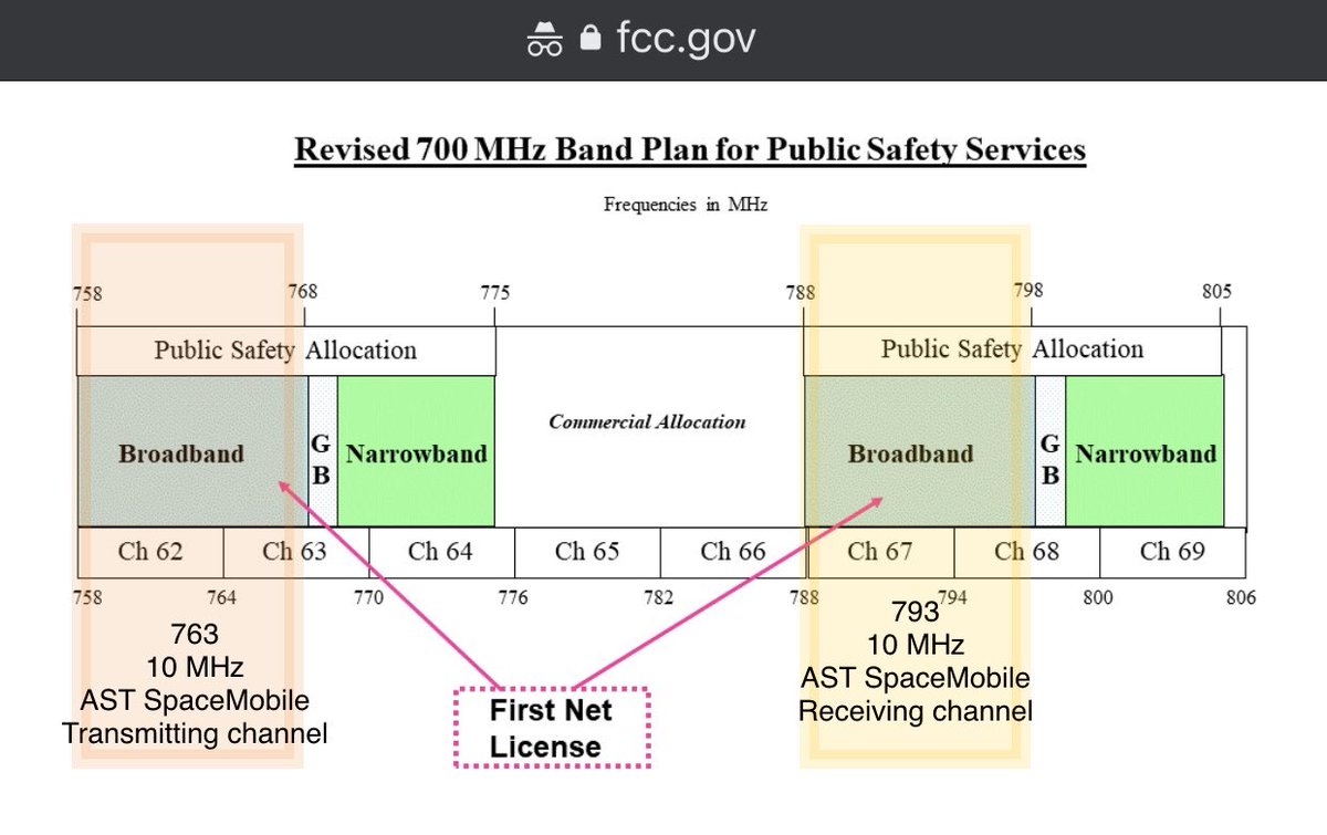 The amendment to AST application for US market access shows the lowband spectrum they target in the USA with the initial Bluebirds (block 1 & 2)