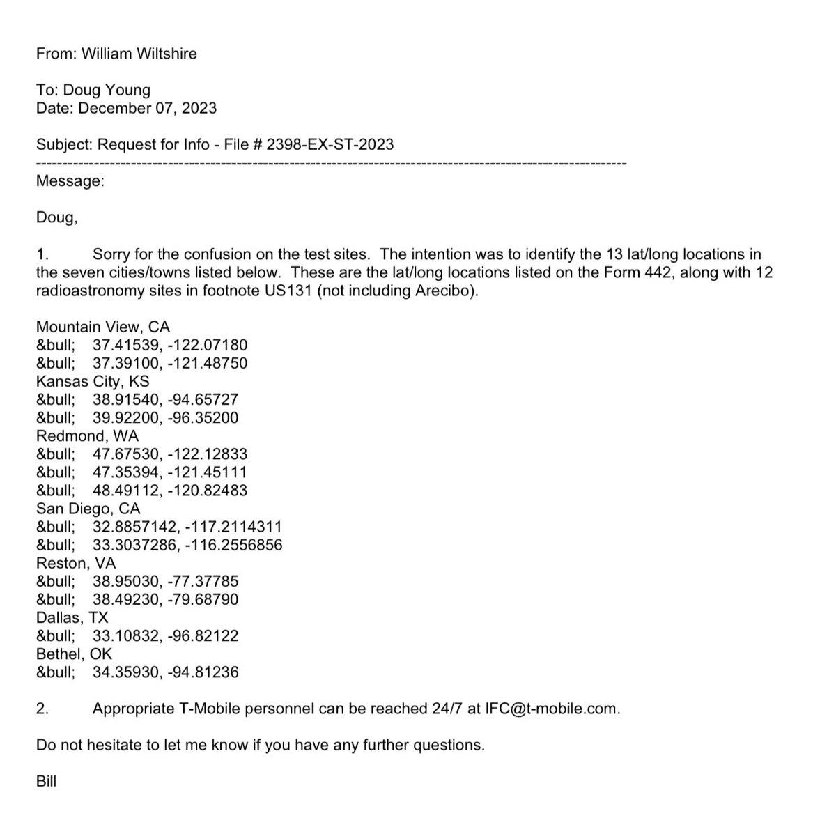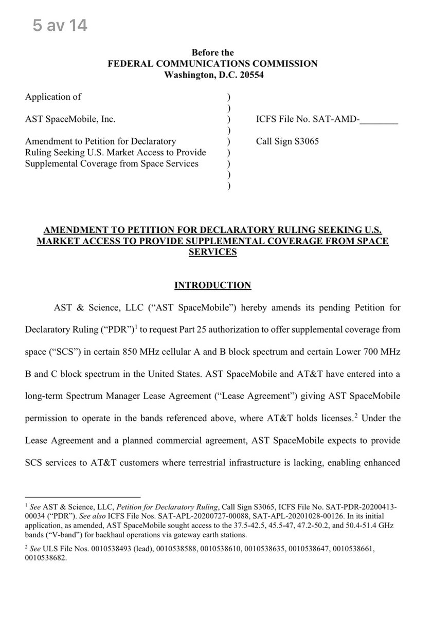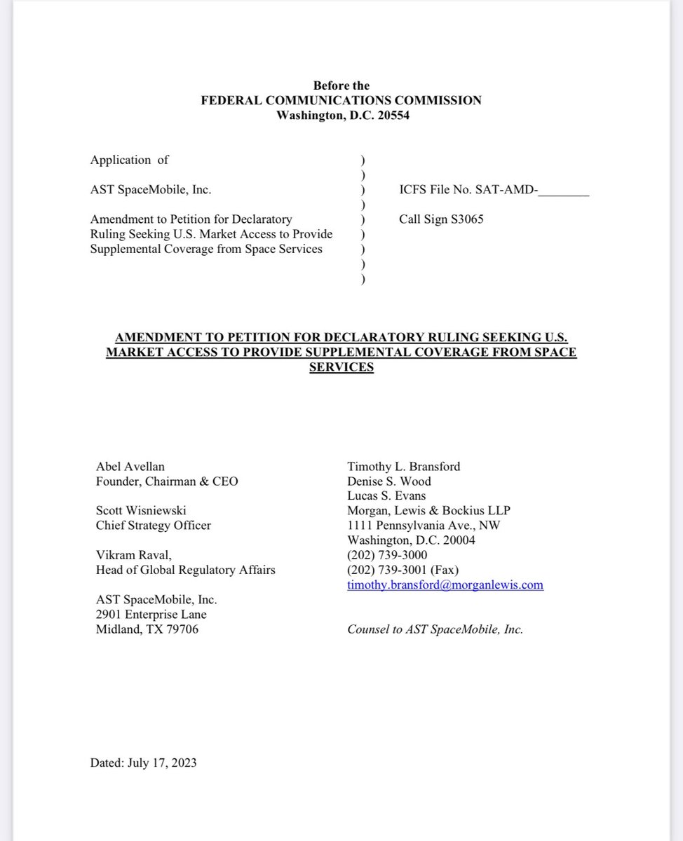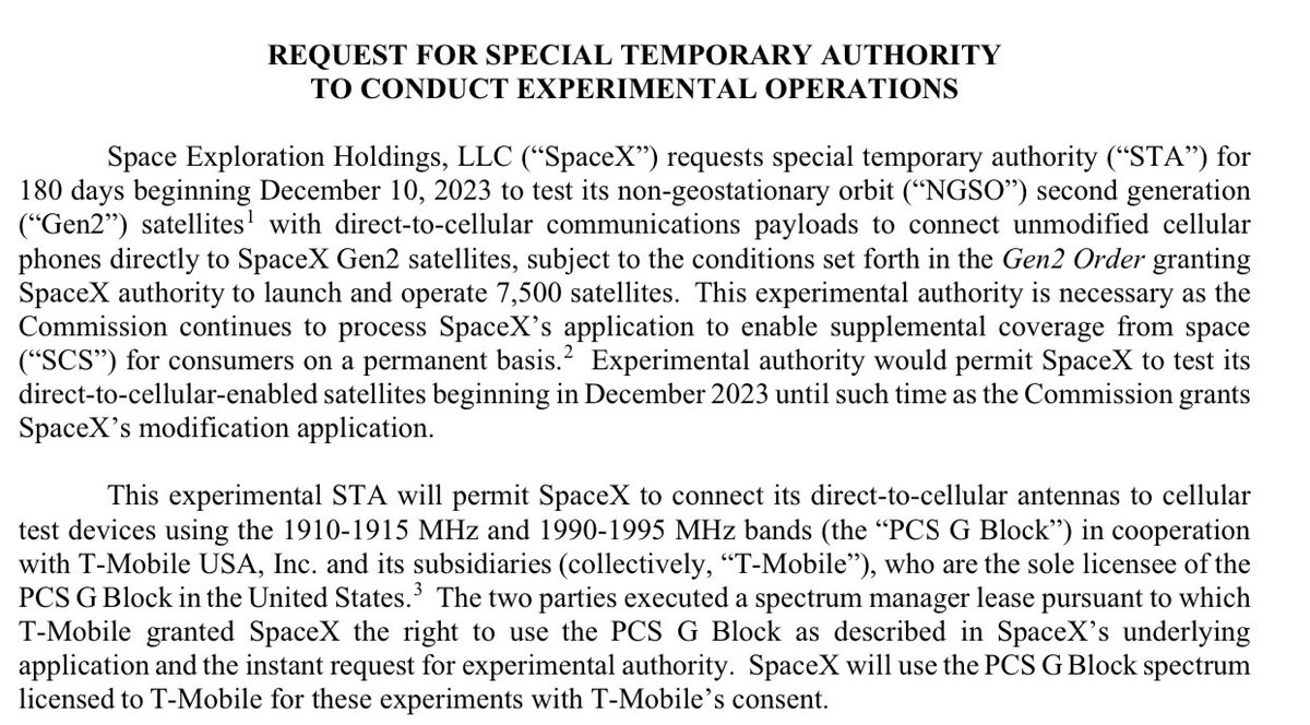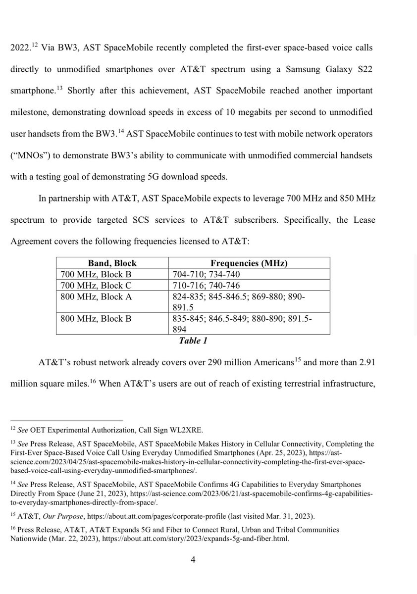It is interesting to compare AST&AT&T application for commercial access with the testing license Space-X has.