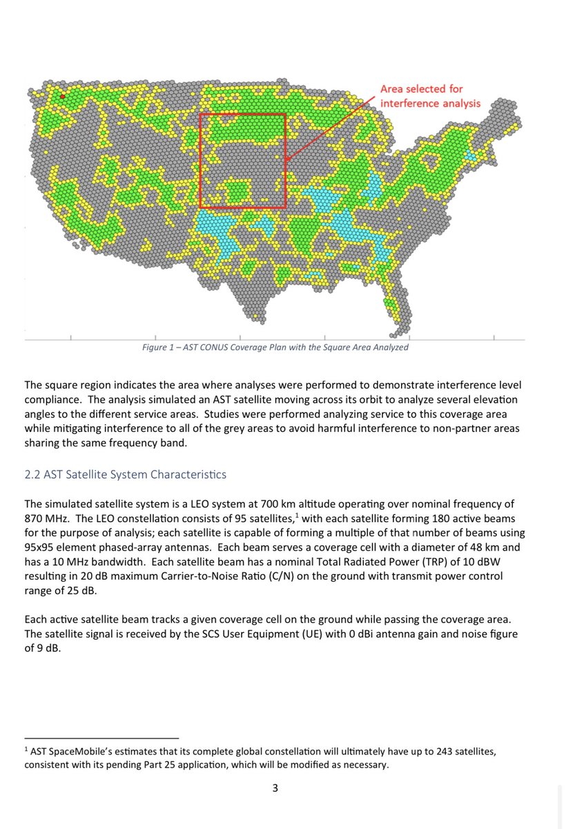 The AST commercial system has requested 48+48 MHz of spectrum. And as I stated before that would allow 2 out of 3 cells in a cluster size 3 network to use per beam max of 40 MHz in the USA at a stated SE of 3.0.