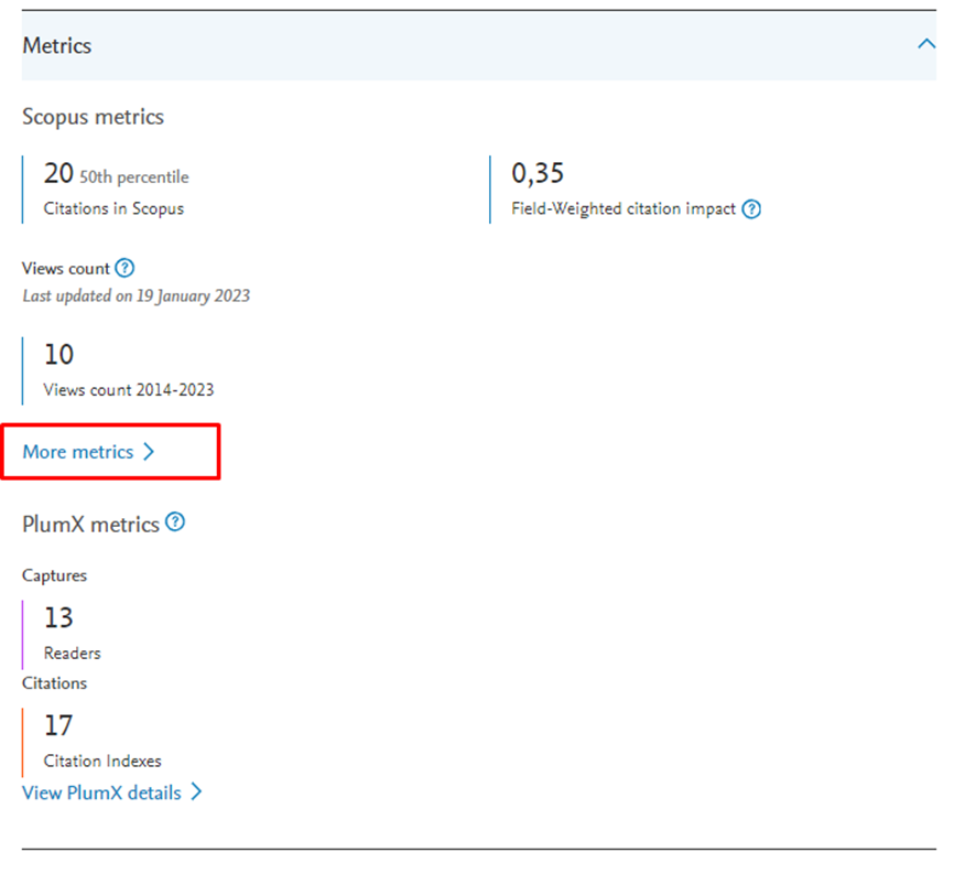 En #Scopus todo es mucho más fácil. Solo hay que encontrar el artículo, y “hacer magia” con el botón “View all metrics” (volveremos a él más adelante).