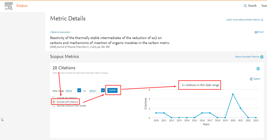 En esas all metrics una de las opciones es “More metrics” y fijaos, permite hacer un análisis sin autocitas, directamente:
