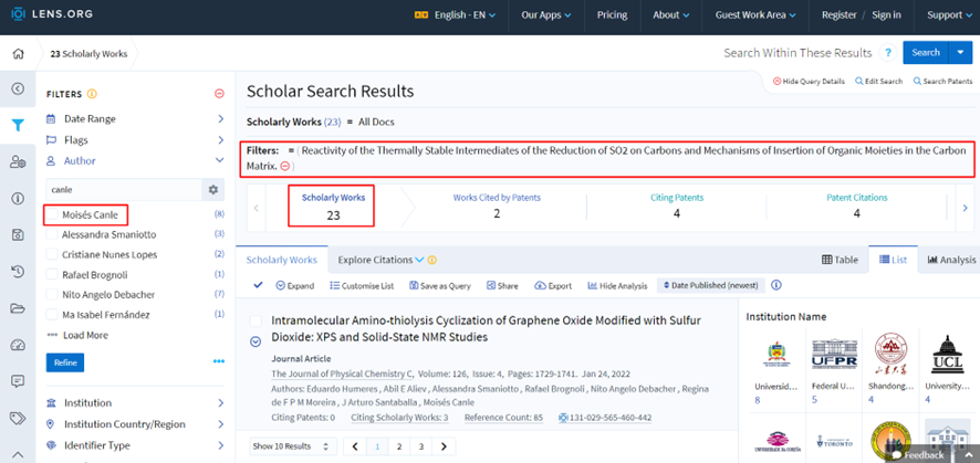 Por desgracia en Google Scholar esto no puede hacerse, tampoco en #Dimensions, sin embargo, sí que se puede hacer por un procedimiento similar a WoS en #TheLens