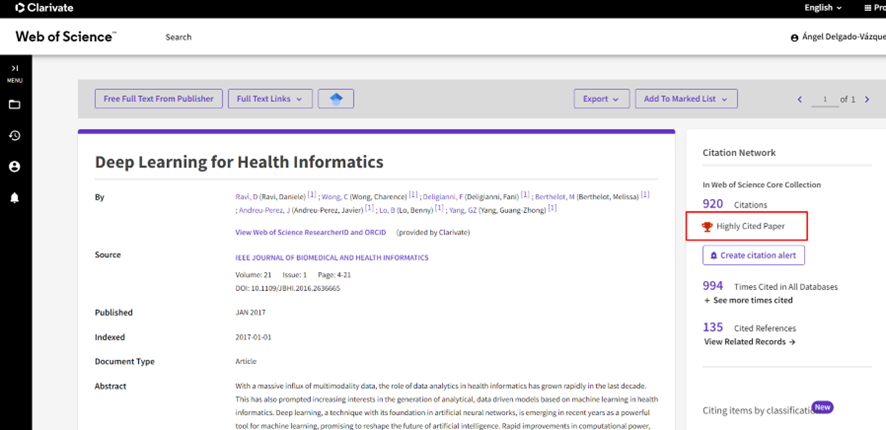Comenzaremos por WoS y algunos clásicos, los Highly Cited Papers y los Hot Papers. Bueno, en realidad esta información no solo está en WoS, sino también en Essential Science Indicators y la consulta sería algo como esto, buscando por ejemplo por autor: