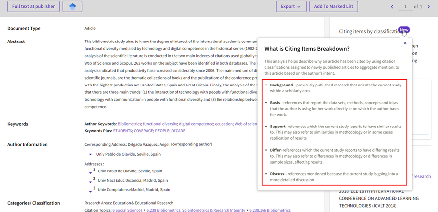 Finalmente, se pueden emplear otras formas de poner en valor las citas tirando de lo cualitativo, por ejemplo, por de dónde proceden (personas, revistas); cuándo se hicieron (recién publicado el artículo, aún se sigue citando, pese a los años que han pasado),