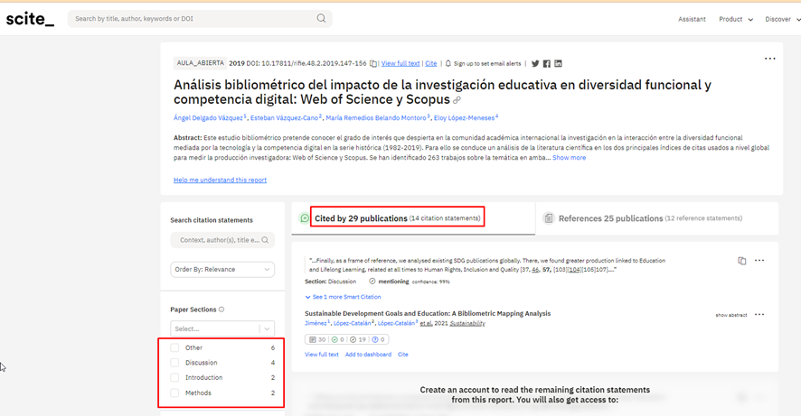 incluso, con la propia WoS o con #Scite (si no lo conocéis os lo recomiendo) en qué secciones de otros trabajos se citan los vuestros: