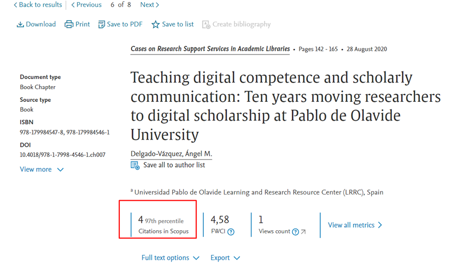 Otra cosa importante a la luz de algún comentario: se ofrecen distintas OPCIONES y de entre ellas, las más complicadas (y costosas) son las de WoS. En Scopus se obtiene casi toda la info a partir de la pantalla del artículo, igual en Dimensions o Dialnet Métricas.