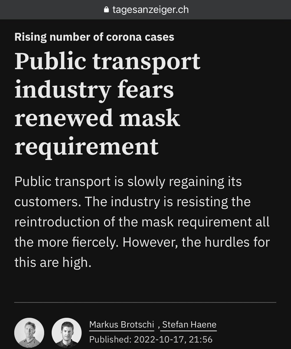 Swiss🇨🇭 public transport companies are very much against mask requirements there.