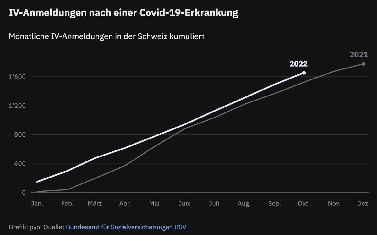 People are still registering for long term disability (IV) after a COVID infection at similar rates to 2021.