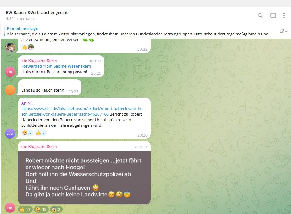 Nach einer sehr kurzen Nacht, die Erkenntnis, dass natürlich auch Bauern an dem Angriff wohl beteiligt waren, aber wohl auch Rechtsextremisten. Aufrufe dazu erfolgten in den Reichsbürger Bauernchats. Und wurden von Bauern gelesen! #Habeck