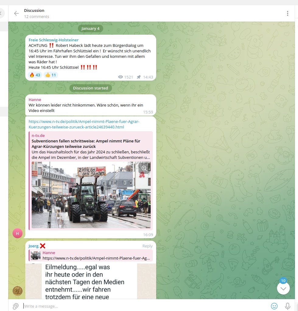 Hinter diesen ganzen Bauern-Kanälen stecken "Rassereine" Militante Reichsbürger. War schon länger bekannt, hatten vorher schon diverse andere "Protest"-Gruppen zu Corona-Zeiten. #NoAfD #AfD