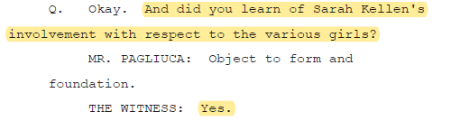 An investigating officer testified to Kellen's knowledge of her involvement with recruiting girls.