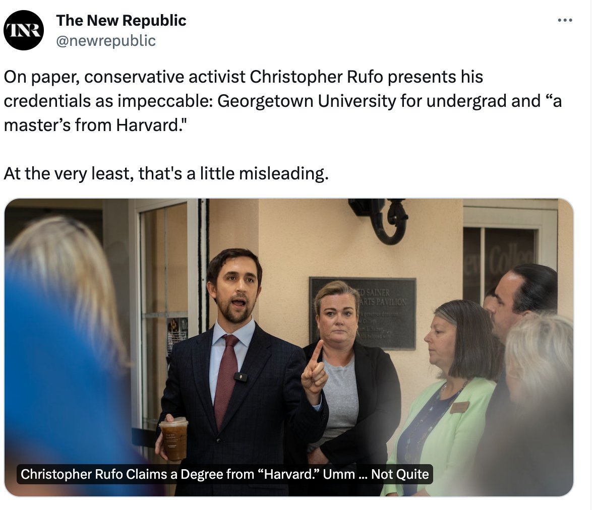 I see that the Left, desperate for revenge for the scalping of Harvard's president, is resurrecting this old smear piece from The New Republic that falsely claims the master's degree I earned from Harvard as a non-traditional student is somehow not a real Harvard degree.