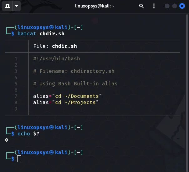 Because the batcat command was completed successfully and without error, the exit code is zero, as expected.