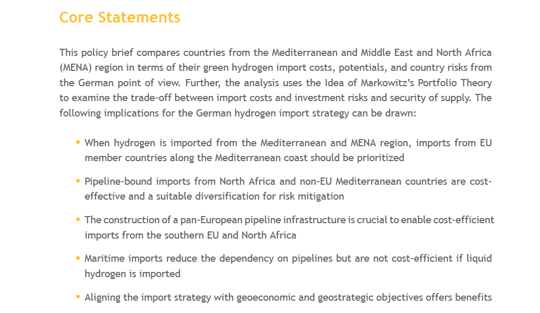 Les pays sud-européens et du MENA attirent l'🇩🇪 : ils présentent de forts potentiels en solaire et éolien pour produire de l'hydrogène par électrolyse, qui pourrait être accessible via des pipelines de quelques milliers de kilomètres, ou à défaut par fret maritime.