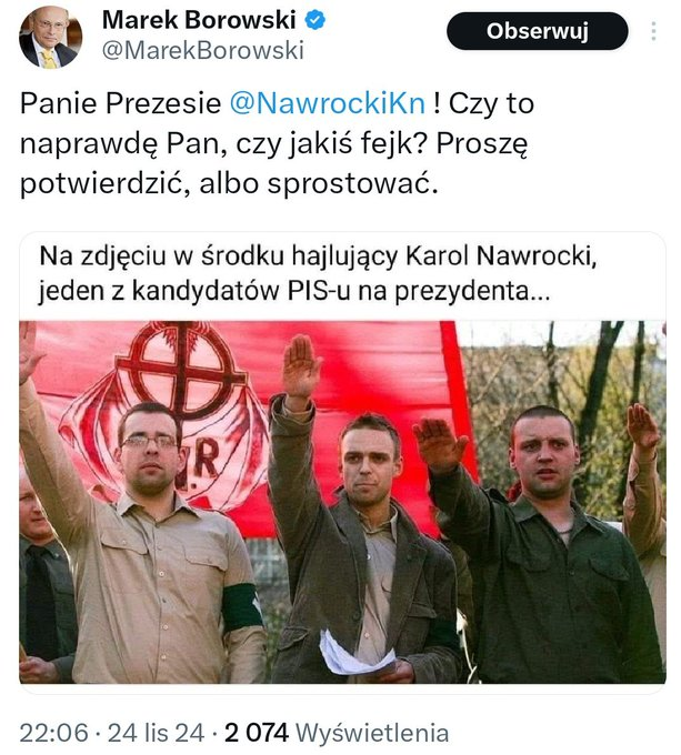 Kłamstwa na temat Karola @NawrockiKn i próba doklejenia mu fotografii z hajlującym Greniuchem to znany model kombinacji dezinformacyjnej. Dokładnie w ten sam sposób pracują np. rosyjskie i białoruskie służby.