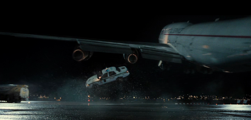 The shot of the police car being blown through the air was difficult to pull off. Effects Supervisor Chris Corbould and his team attached the police car to a crane with a rig and essentially yanked it through the air. The only CGI was to remove ropes and wires.