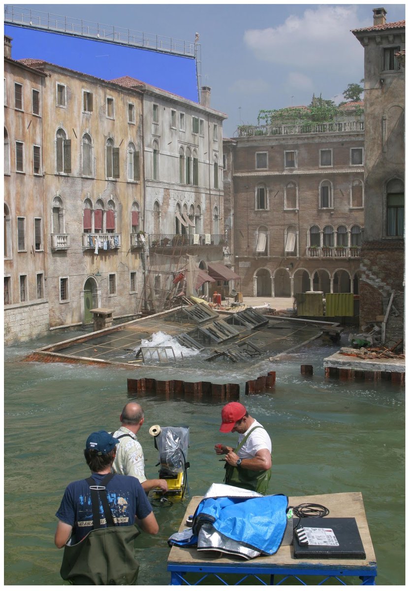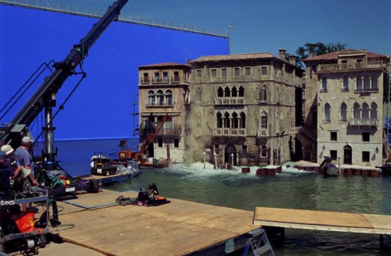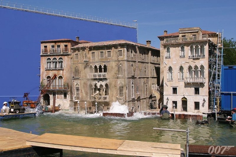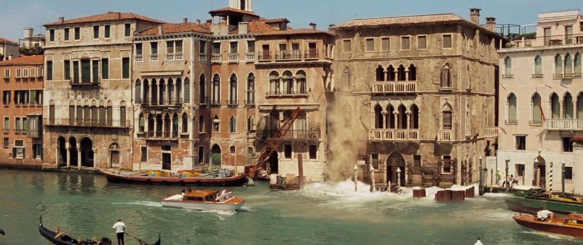 Robert Wade said they chose Venice as the setting because it was thematically relevant for Bond and Vesper’s love to sink figuratively and literally. They came up with the idea of the sinking palazzo when they saw footage of the leaning Tower of Pisa having its foundations stabilised.