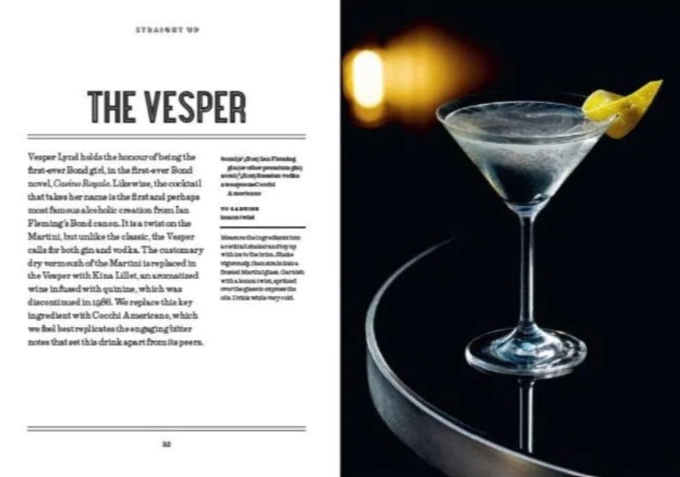 We see Bond order his first vodka martini. He asks for “3 measures of Gordon’s, 1 of vodka, half a measure of Kina Lillet. Shake it very well until it’s ice-cold, then add a large thin slice of lemon peel.” It’s word for word how Bond orders his first vodka martini in the novel.