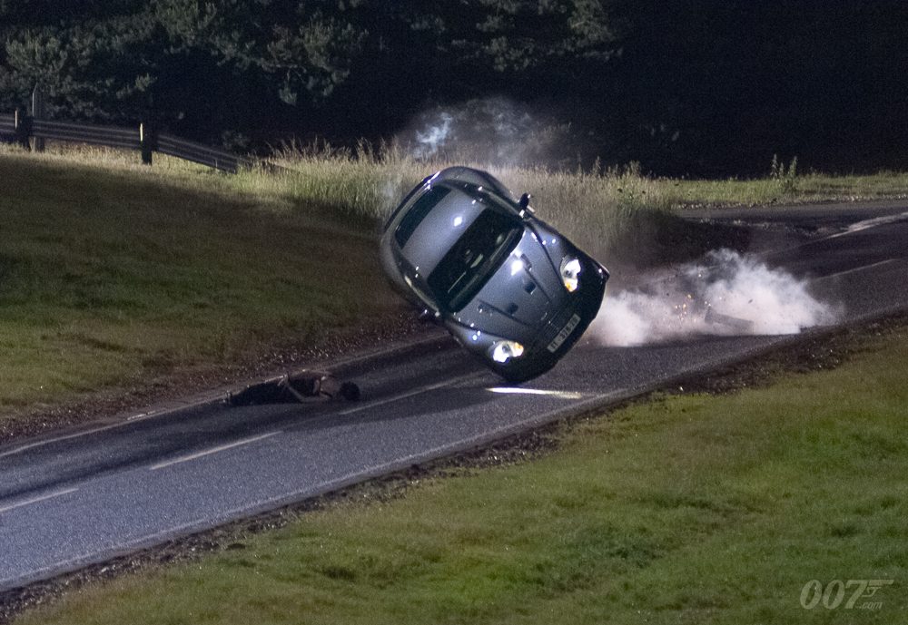 Flipping the Aston Martin was tricky. It’s a racing car and designed t produce a lot of downforce so the stuntman couldn’t flip it over. Instead, they installed an air cannon on the bottom of the car to shoot it over when detonated.