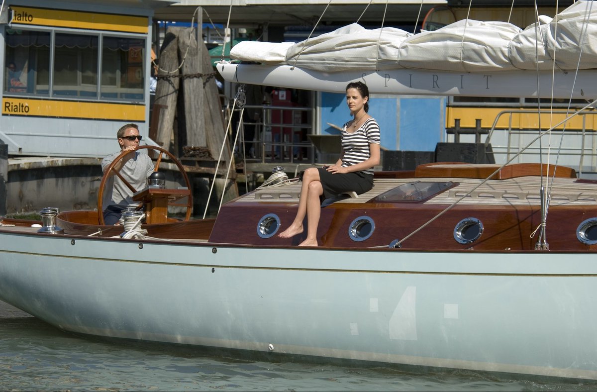 Bond and Vesper sail into Venice on Bond’s yacht, a Spirit 54. The film had to get special permissions from Venice authorities to sail along the Grand Canal. There were no records of the last time a pleasure yacht sailed there but it was believed to be 300 years earlier.