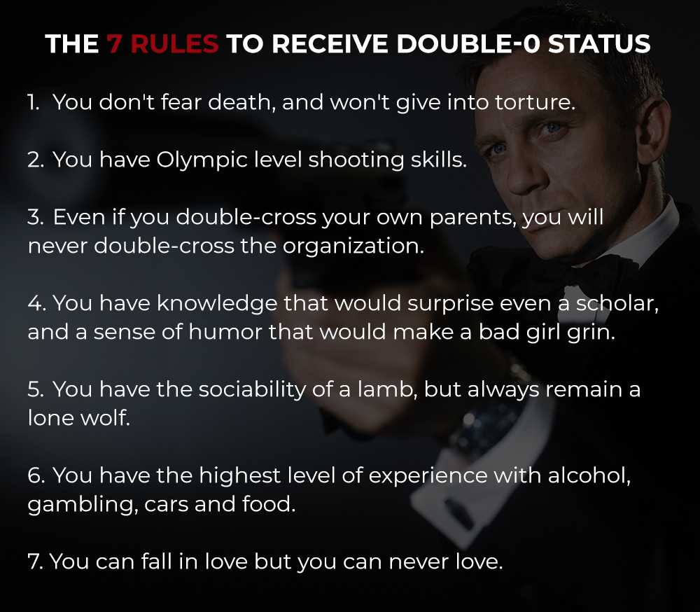 Casino Royale was the first James Bond film to be shown in mainland Chinese cinemas. To familiarise Chinese audiences with the character, Eon produced a leaflet called The Seven Rules to Receive Double-0 Status. The rules were: