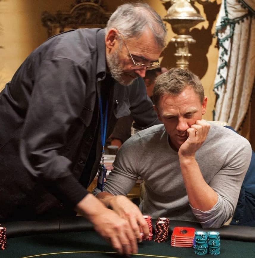 The casino dealer was played by Austrian actor Andreas Daniel. When the production was looking for a dealer, they called round some casinos. By chance, Daniel answered one of the calls. He said “You’re looking for a card dealer? You just found him.”