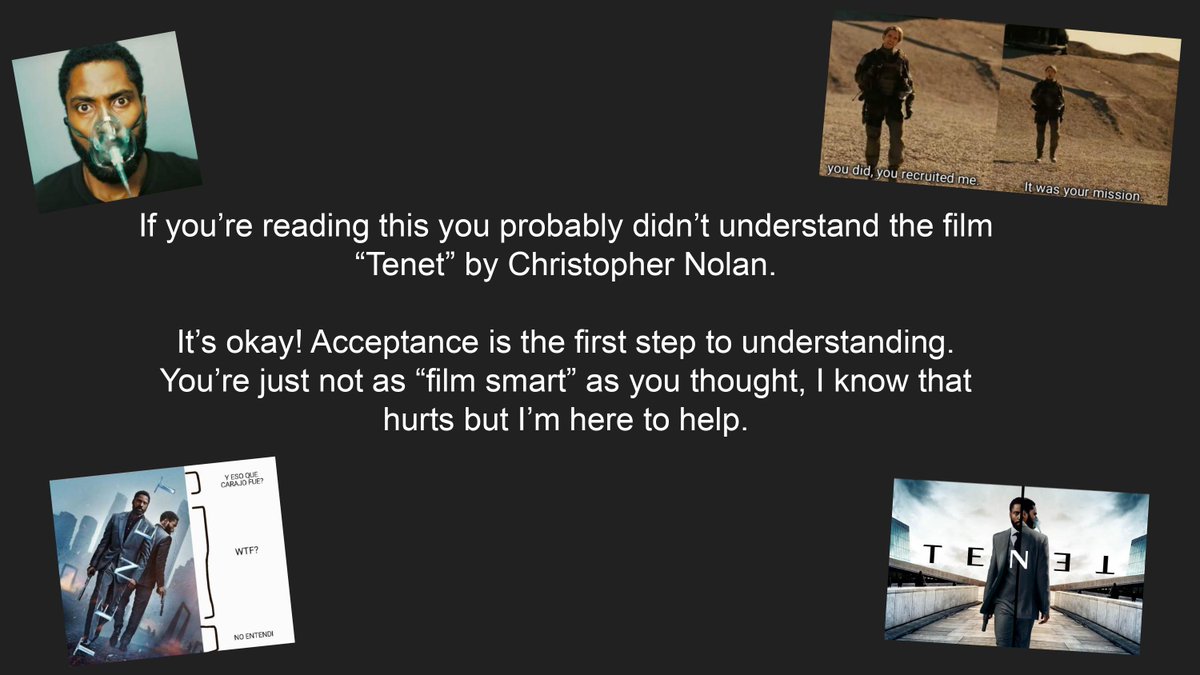 If anything's not clear go rewatch a scene or ask for clarification (Tenet fans help me out here lol)