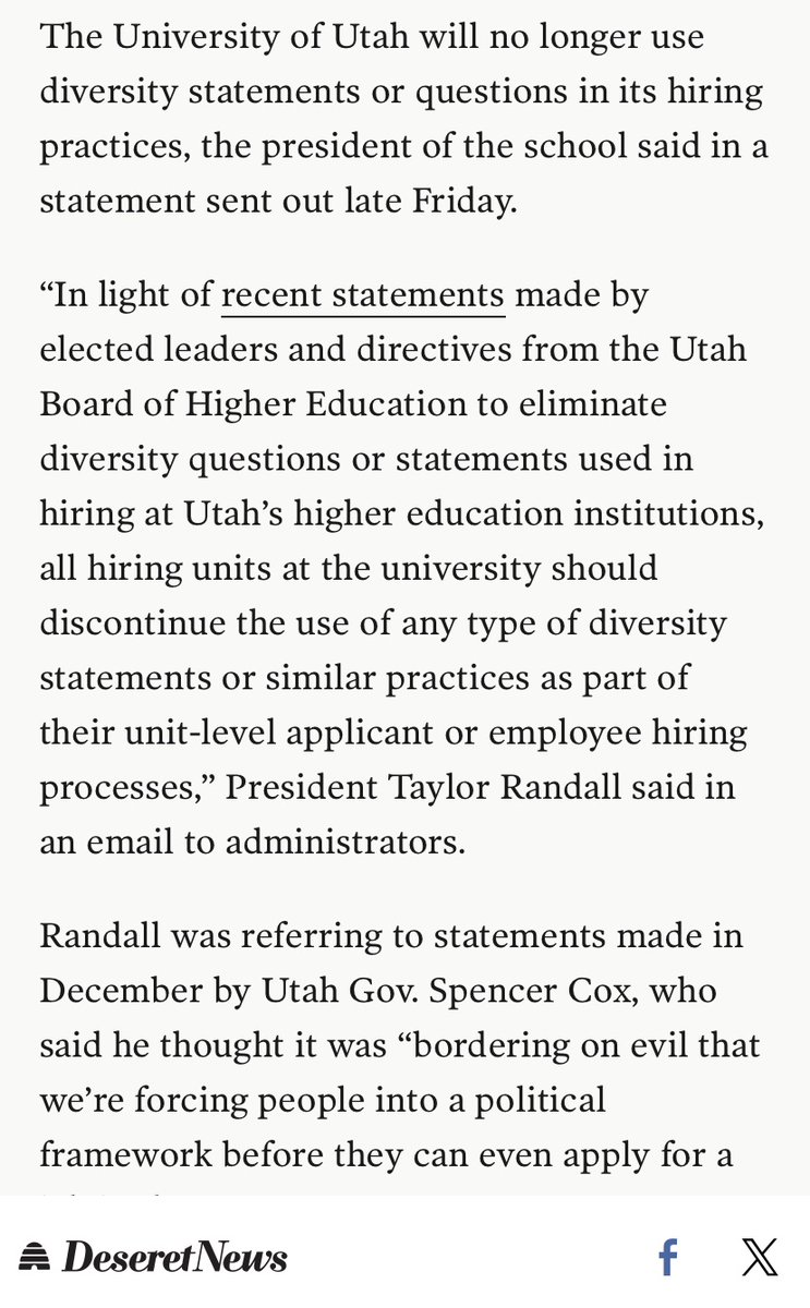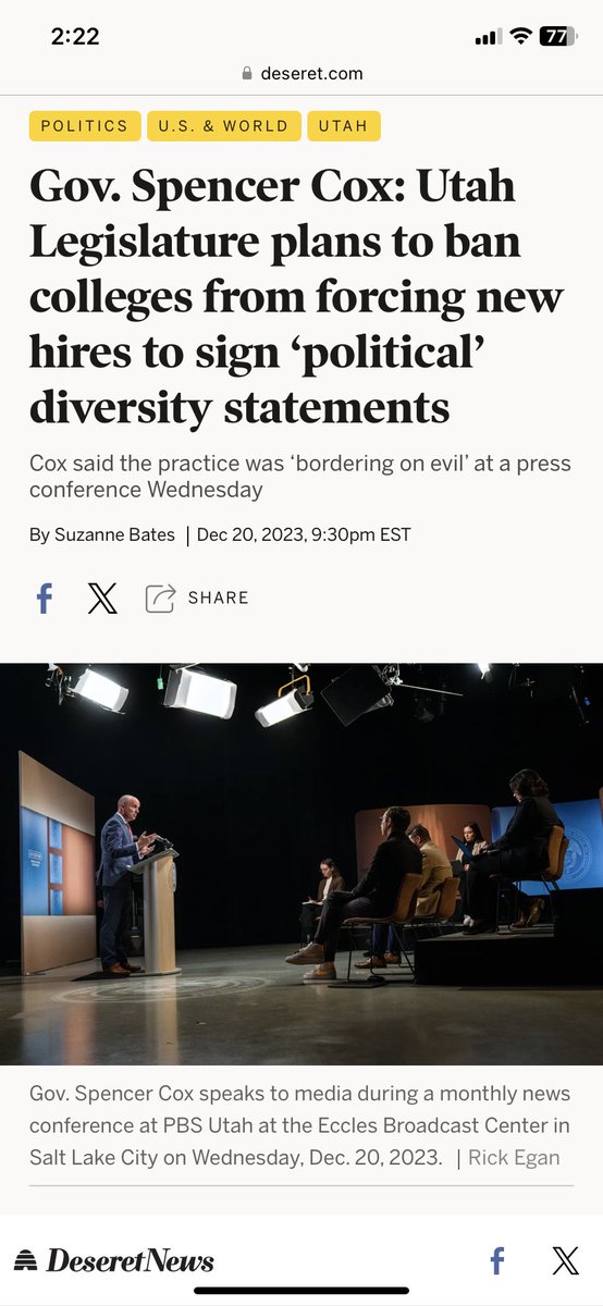 In December, Governor Cox surprised us and announced that he strongly opposes DEI statements.