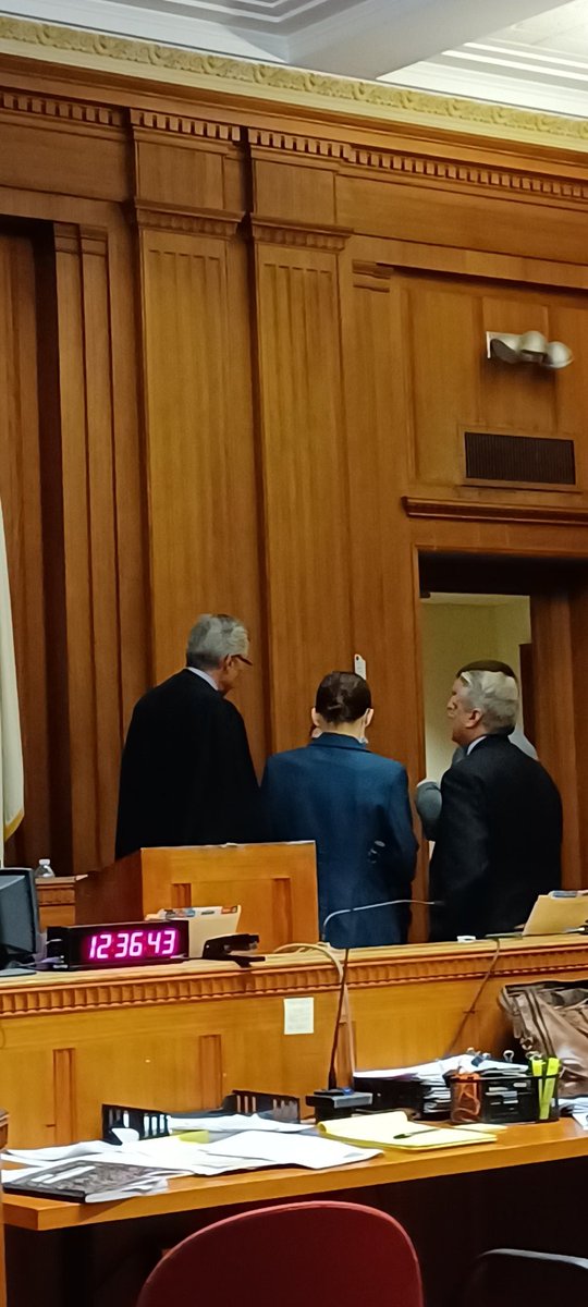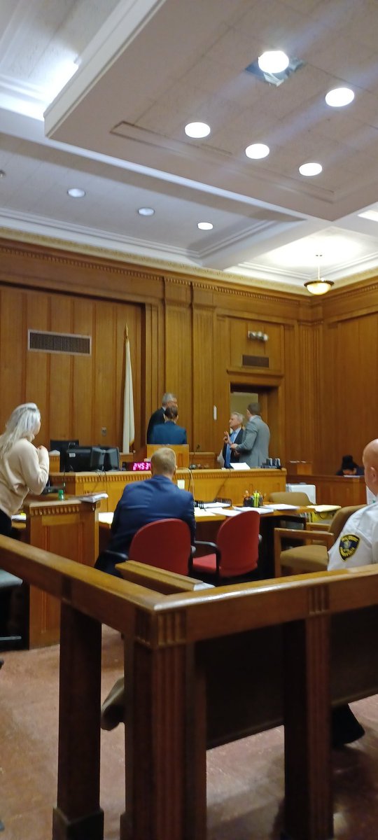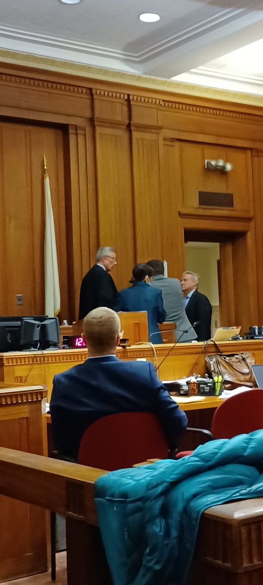 I said hello, we shook hands, and everyone agreed press need to be able to ask Karen for comment before and after hearings.