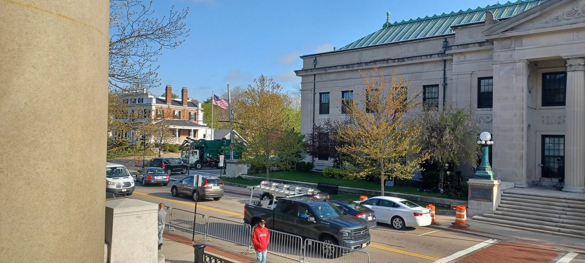 As of right now, it's just me and the media in front of the court, although it does feel like the eyes of the world are about to turn to this sleepy hamlet in southeastern Massachusetts