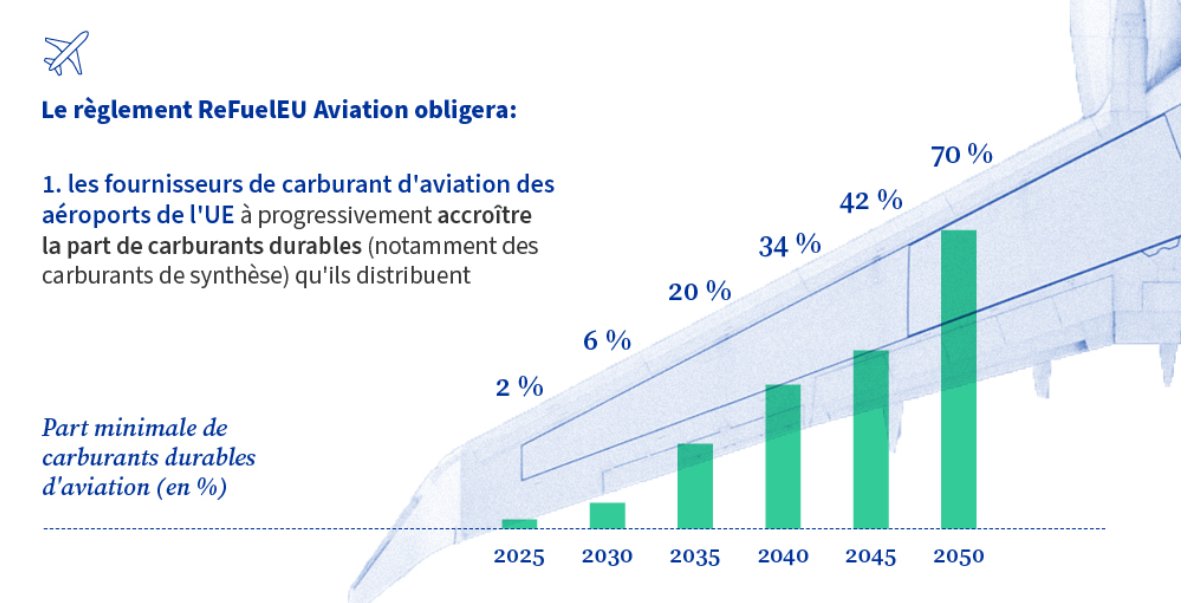 Atteindre 10% d'e-fuels augmenterait le prix des billets d'avion de 5% et les prix des marchandises transportées par fret maritime de 1 à 2% dans un cargo 100% ammoniac ou méthanol.