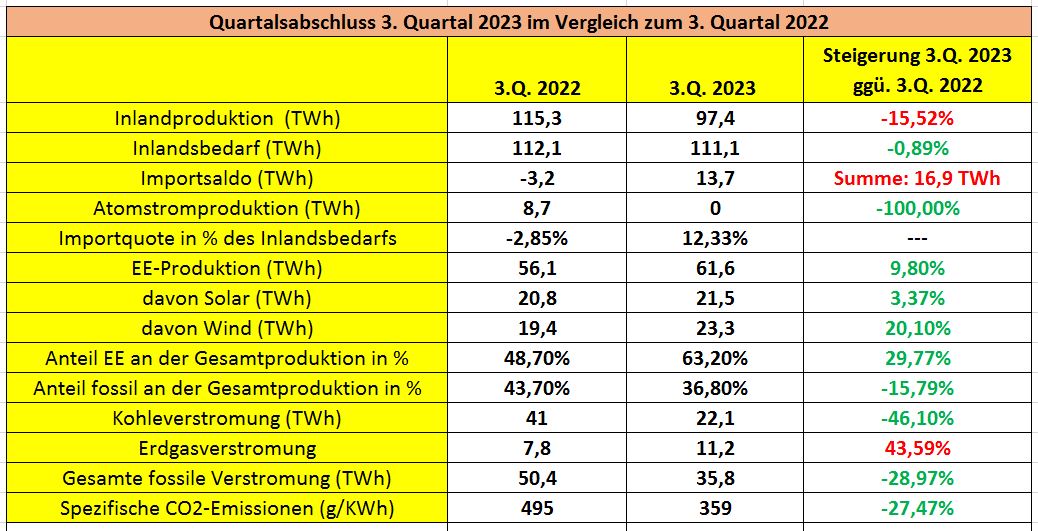 QUARTALSABSCHLUSS 3. QUARTAL 2023 und Vergleich zum 3. Quartal des Vorjahres