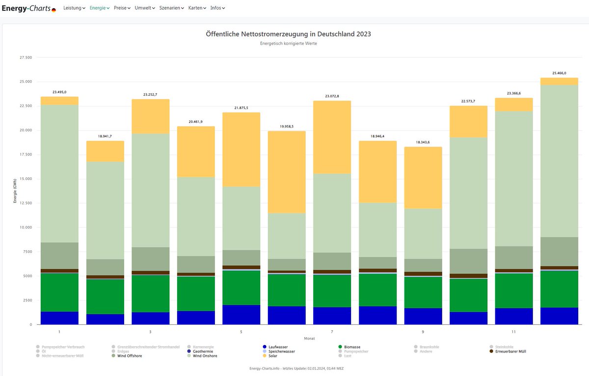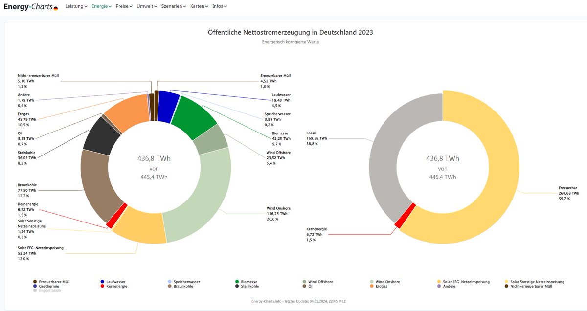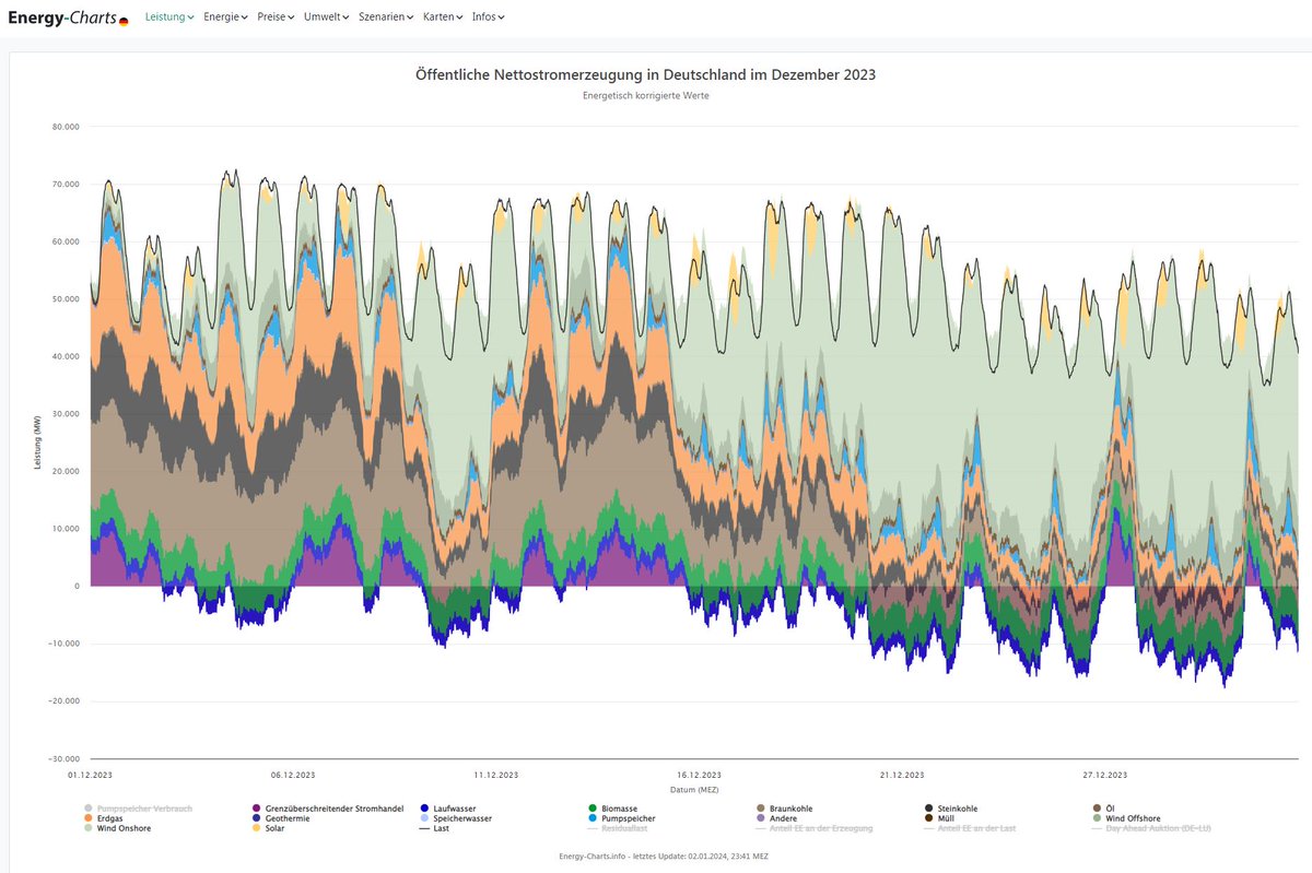 ...Der Produktionsrückgang bei etwa gleichbleibenden Bedarf wurde durch den Import von 13,7 TWh aus dem europäischen Ausland, überwiegend durch EE aus Skandinavien, der Schweiz & Österreich ausgeglichen