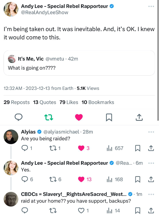 "I'm being taken out!" "My house is being raided!" "I am not okay!"