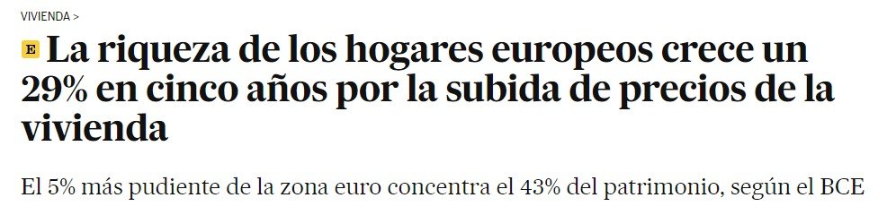 La prueba de lo dicho (tuit infra) en ese titular. Una riqueza ficticia a partir de NADA. Pero esa ilusión de dinero hace que la gente gaste más, se endeude más, mientras los jóvenes no tienen dónde meterse. [#crecimientismo ladrillero en el #idioceno] elpais.com/economia/2024-…