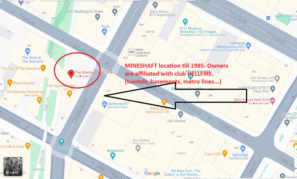 3/8 Standard hotel (owner Andre Belaz). Built in front of gay bar MINESHAFT. Had a tunnel that led downstairs to the lower floor, the so-called playground. Next to the ferry and surrounded by metro underground.
