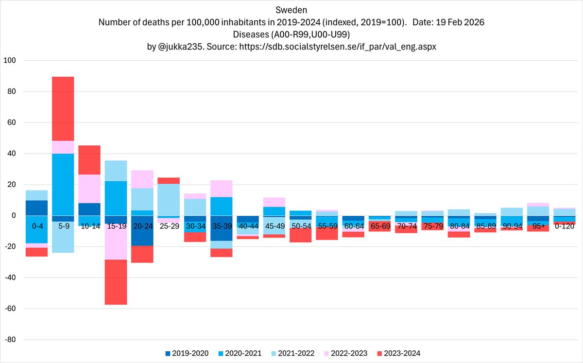 Between 2019 and 2024, the Swedish health system took a step back. It would appear that school aged children were sacrificed for the greater good. 2/x
