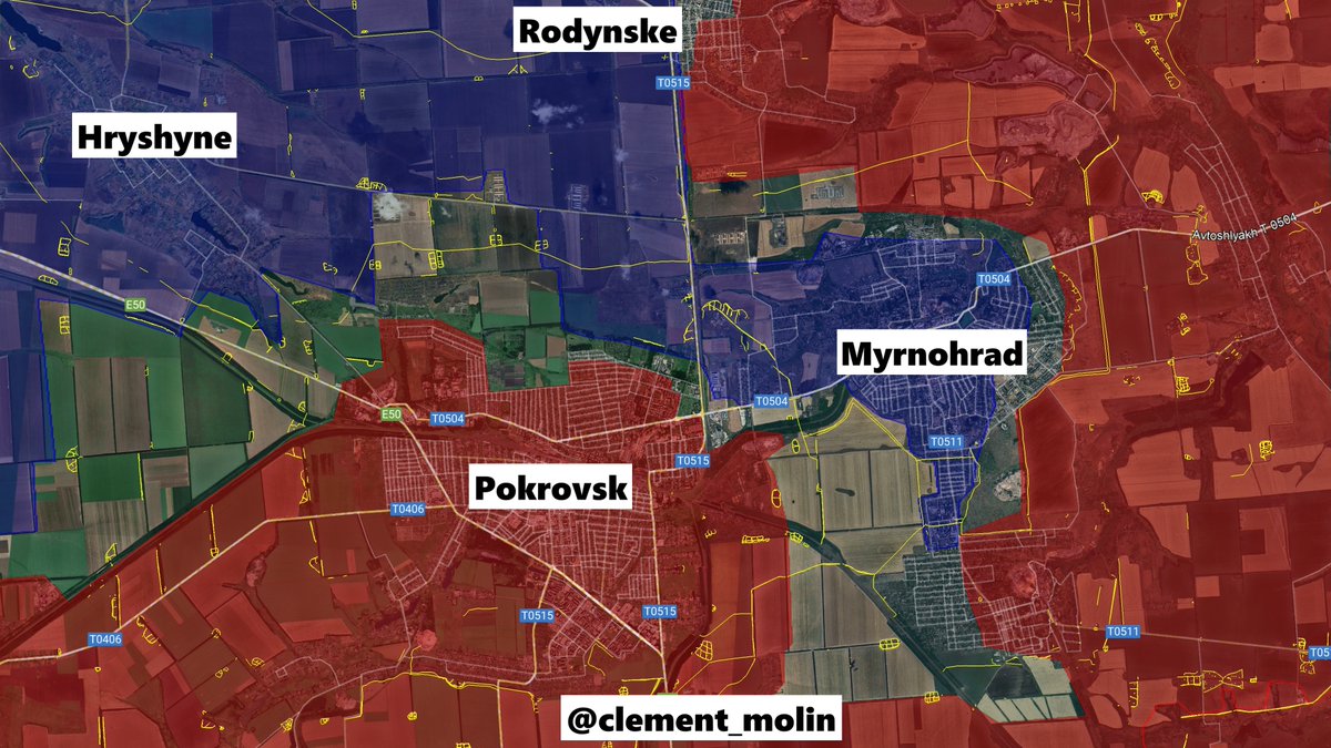 Il aura fallu un an et deux mois pour contourner les défenses de Pokrovsk par le sud puis le nord-est avant de prendre la ville. (carte de @Deepstate_UA)