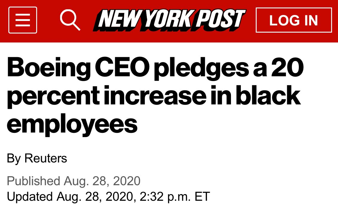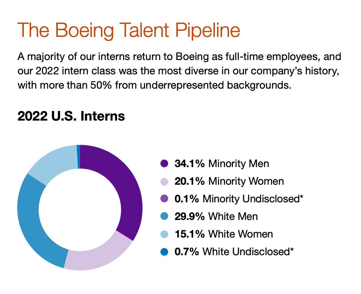 In Boeing's 2023 DEI/GEDI report they are proud that more than 50% of their interns are from "underrepresented backgrounds." Were hiring based on merit or based on skin color and identity? DEI was never about proportionate representation; it's about destroying objective merit.