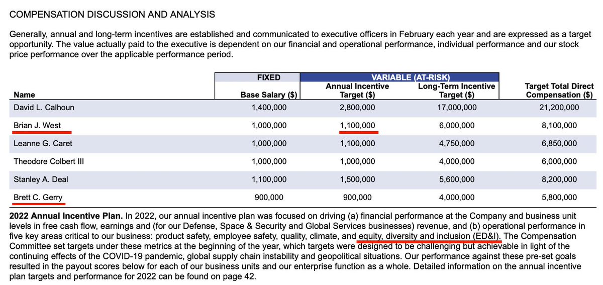 Up to 40% of the executives' potential pay is in that "annual incentive pay program" which is tied to hitting DEI targets. For those just catching on, DEI doesn't have anything to do with aircraft manufacturing or safety.