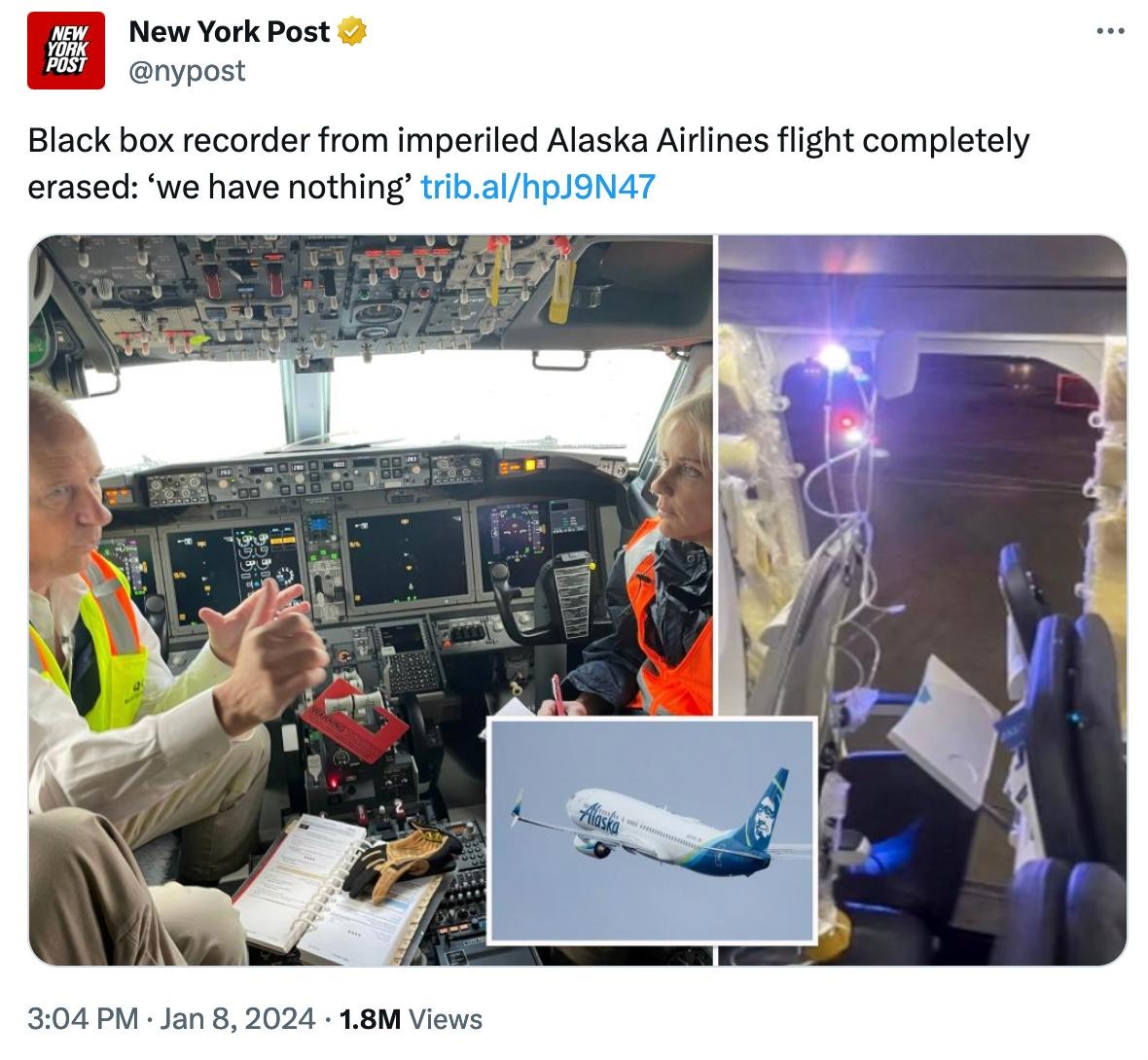 Possibly connected: We need a serious investigation into this recent Boeing accident. Why was the black box recorder completely erased for a 20 minute flight? Isn't that completely nonstandard?