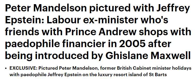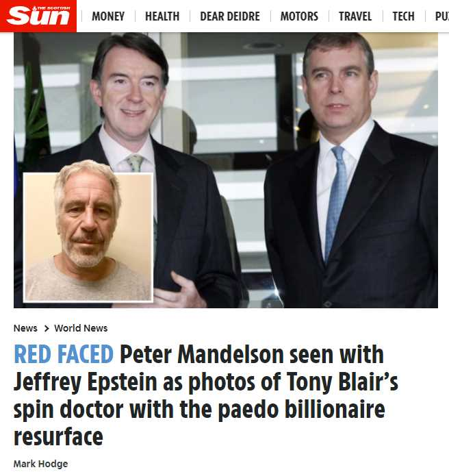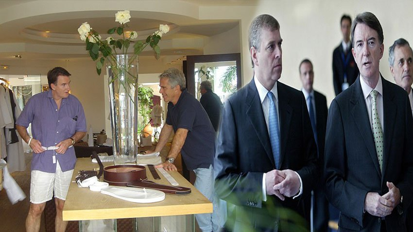 The image of the ex-Cabinet minister on the paedophile financier's private island in 2006 has resurfaced. Mandelson is in the Rains List.