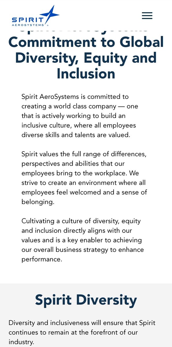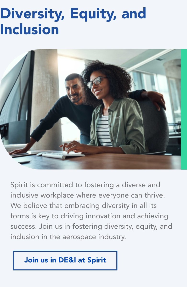 Spirit Aerosystems is the company that provided Boeing the door plugs, one of which failed. Boeing prioritizes DEI and ESG in its supply chain (bc of ESG requirements), and Spirit Aero delivers. DEI and Sustainability are at the top of their careers page. careers.spiritaero.com